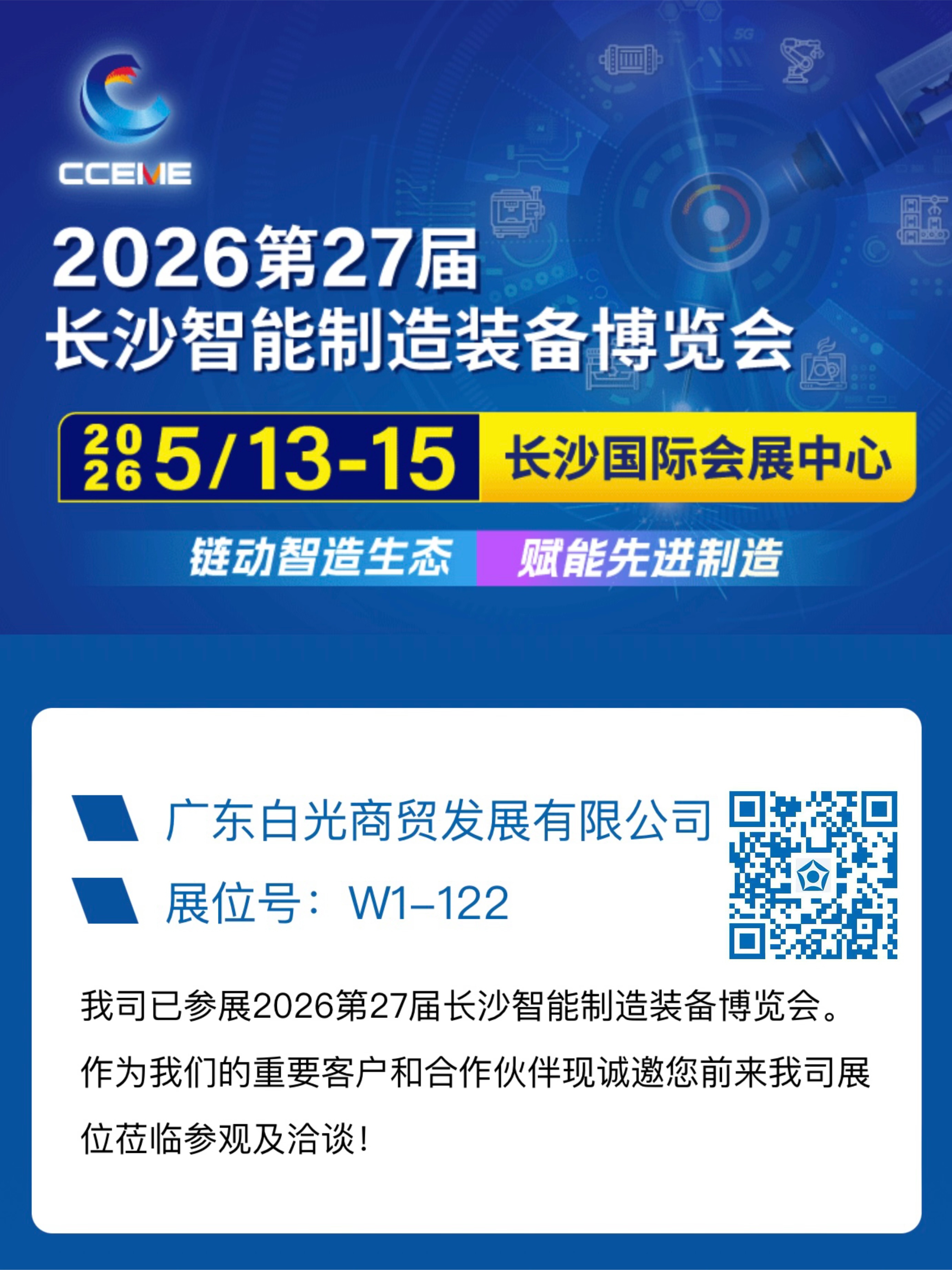我司将参加2026年5月13-15日在长沙国际会展中心举办的第27届长沙智能制造装备博览会。